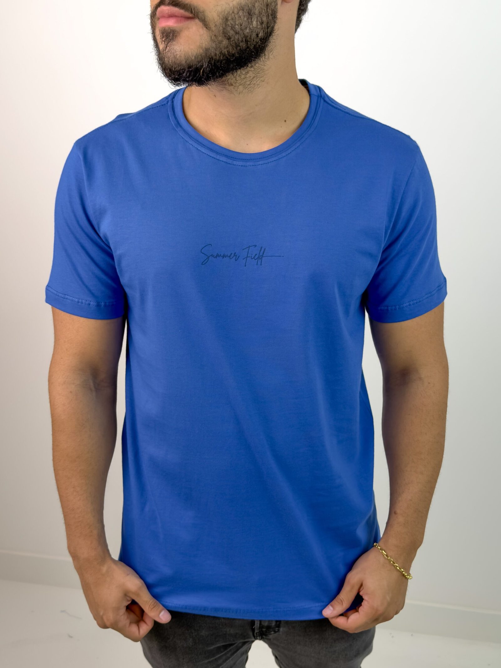 A T-shirt Summer Field redefine o conceito de básico premium. Desenvolvida para ser a peça mais versátil do seu closet, ela une o minimalismo moderno ao conforto extremo das fibras naturais. Com um corte que valoriza a silhueta sem apertar, esta camiseta é a escolha definitiva para quem busca um visual clean, sofisticado e pronto para qualquer ocasião do dia a dia.